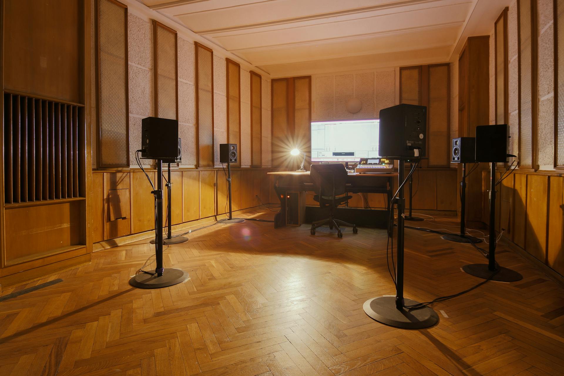 - Electronic music performance space with stage and spatial sound